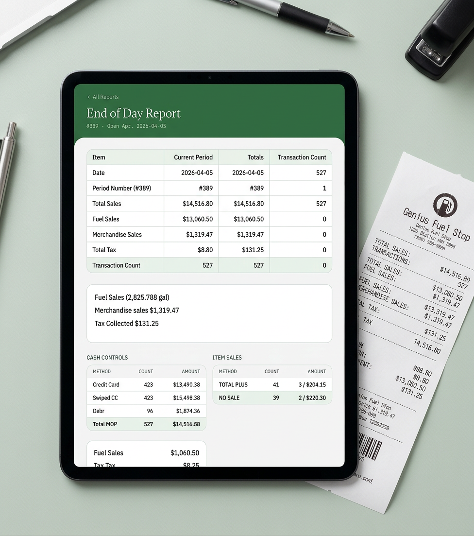Sync daily sales, fuel revenue, and tax data directly into your accounting software.