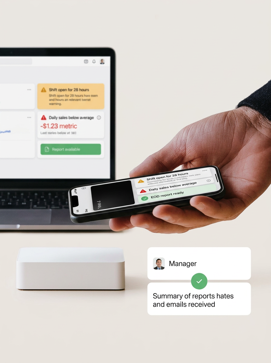 View supported POS systemsEvery 30 minutes, sales data is pulled, transformed, and stored securely. End-of-day reports are generated automatically when the cashier closes the register.